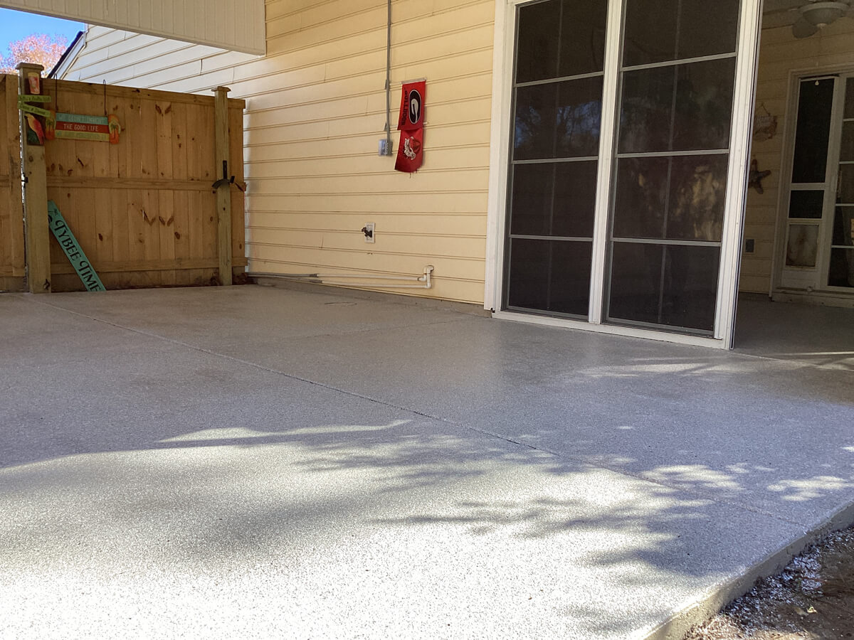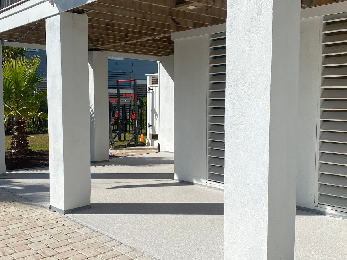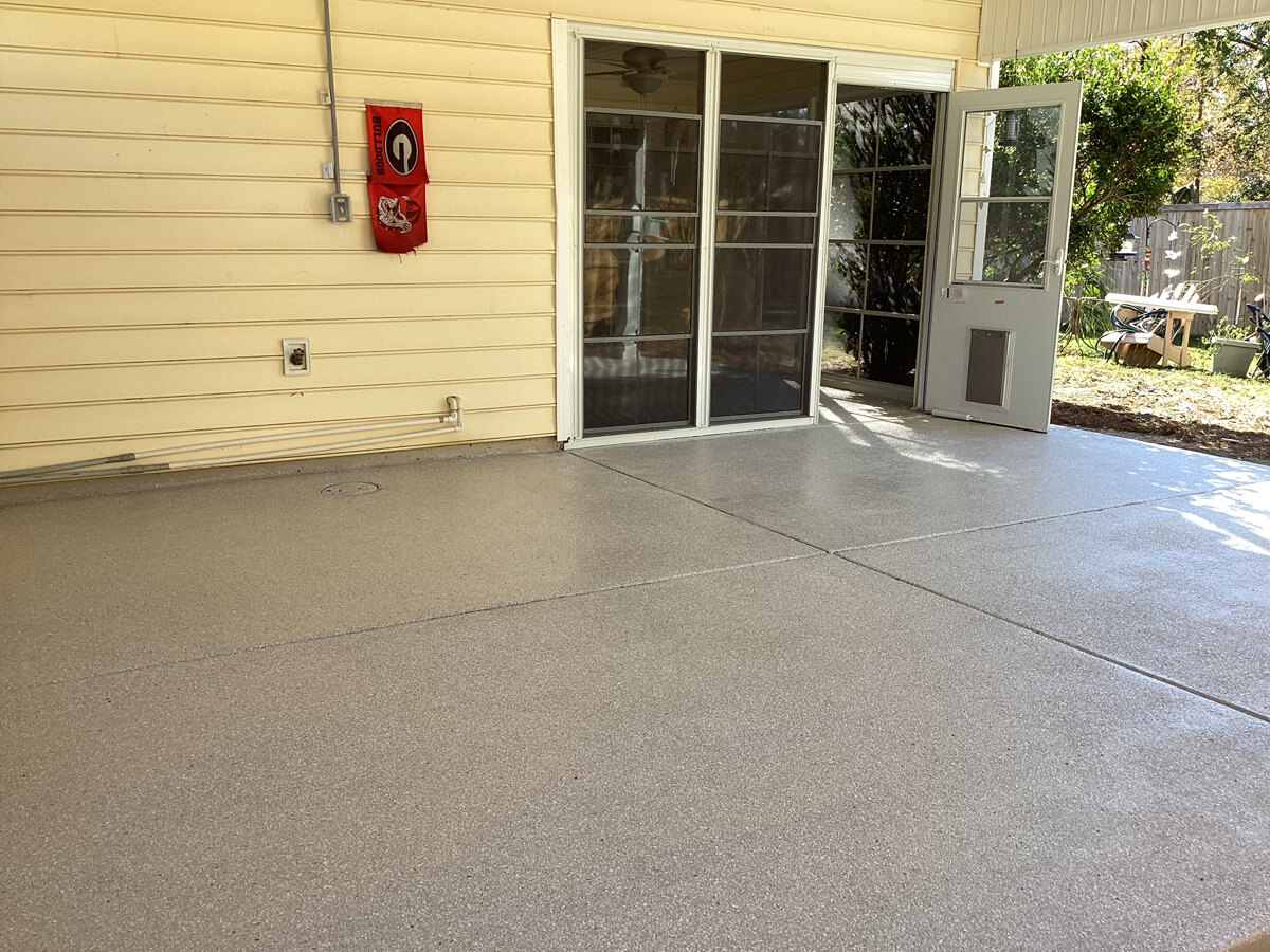 Our patio coatings are UV-stable and built to resist Charleston’s sun, humidity, and salt air.